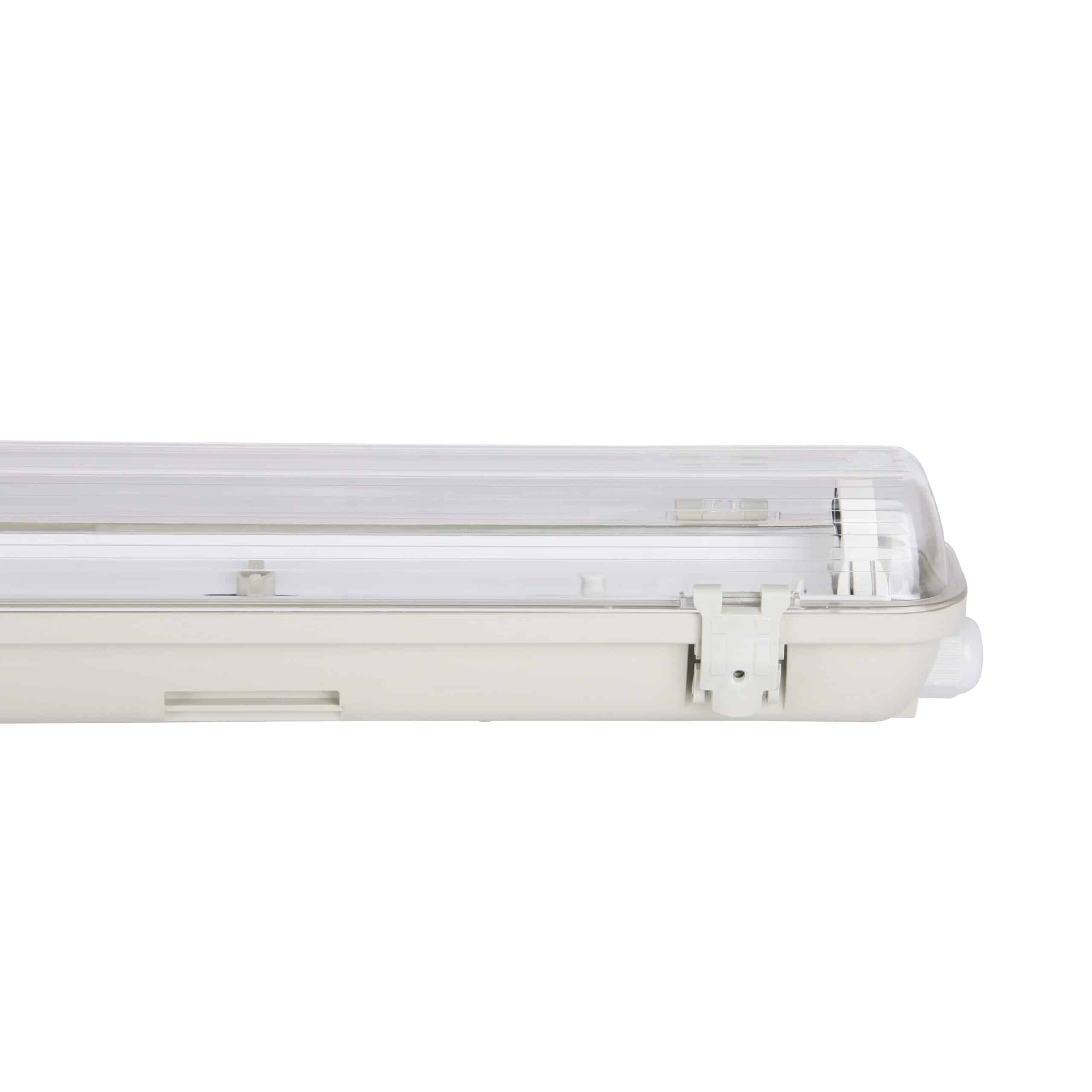 Geschikt voor: - Geschikt voor binnen en buiten - Amoniak bestendig - Kunststof behuizing - Inclusief alle bevestigingsmaterialen - Geschikt voor 1 LED buizen van 120cm - 3 jaar garantie Toepassing: -Koe-Paard-Varkens Stallen -Bedrijfshallen -Overkappingen, garages -Parkeergarages -Cleaning rooms -Carwash (niet meer dan 12 liter per minuut spuitwater)